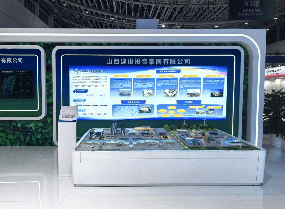在新能源展区,集团通过实物模型、动态沙盘、图文展板及宣传视频等多种形式,多角度全方位呈现了覆盖能源供给、建筑运行、材料研发、生态治理及智能运维的全链条技术体系。