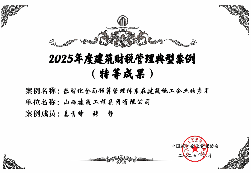 经专家评审和现场答辩,集团两项案例获评特等成果,为优化财务管控、防范财税风险、提升经济效益提供了专业支撑。其中,《某大型国有建筑企业财务数字化与司库体系融合的财税管理创新实践案例》,基于财务数字化与司库体系的深度融合,构建起智能化、集约化的财税管理体系,为有效提升建筑企业价值创造能力与风险防控水平提供了可复制、可推广的实践经验。《数智化全面预算管理体系在建筑施工企业的应用》,有效解决项目过程动态成本监控难的痛点,提高了预算的准确性和科学性,为项目过程管理、成本实时监控、超支项目及时预警和资源分配提供可靠依据。