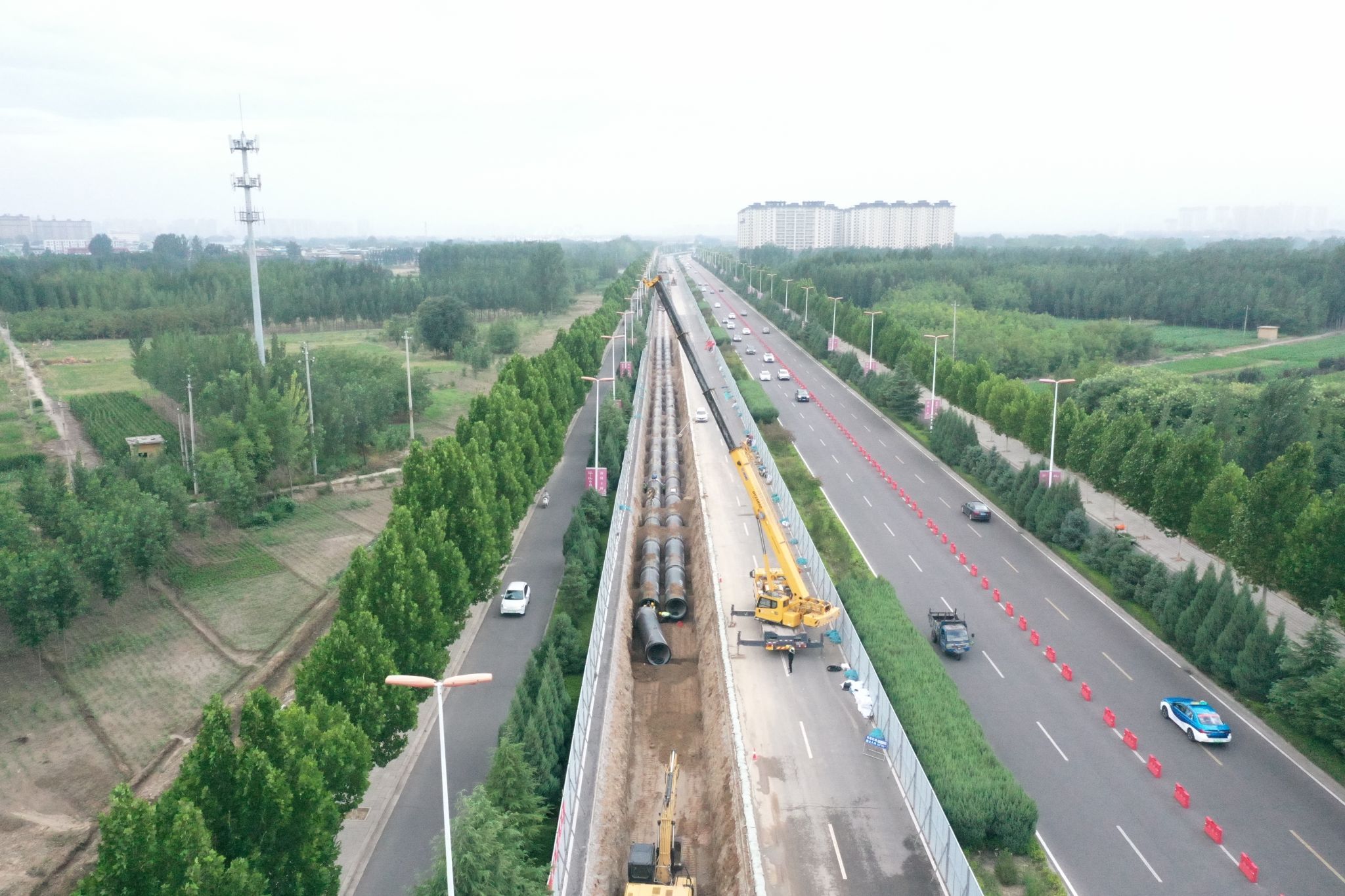 针对工程线路长、工期紧的特点,项目团队采用分段平行施工模式,将全程划分为两个独立标段同步推进。通过成立专项工作组,编制可视化敷设路线图,系统优化工序衔接和资源调配,投入3个管道施工班组、4个土建作业班组、3个机械作业班组,配备10余台大型机械设备和20余台专用运输车辆,构建起高效运转的施工网络。