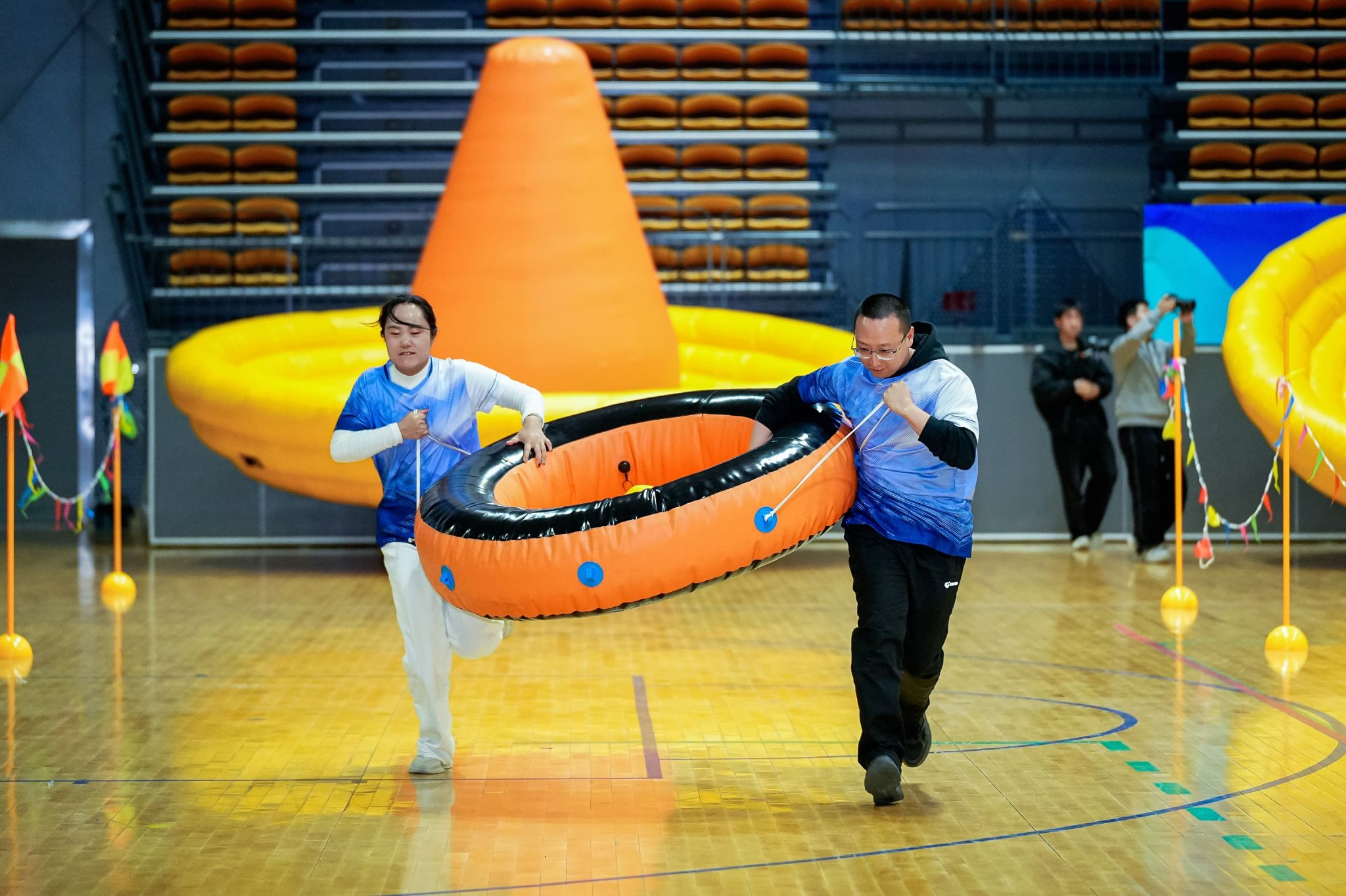 趣味运动比赛,比赛充满了欢声笑语,竞赛项目趣味横生,又极具协作挑战。队员们为了共同目标快速磨合,商讨策略。比赛中既有因配合失误带来的小小插曲,更有通过协作顺利通关后的击掌欢呼,在轻松愉快中进一步凝聚了团队合力,增进了彼此友谊。